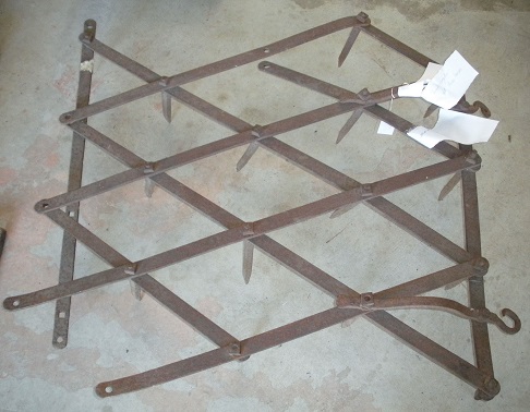 Description Horse drawn diamond harrow which can be linked to two others and all three pulled by three horses.