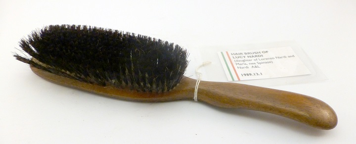 Description Hair brush of Lucy NARDI, daughter of Lorenzo and Maria (nee SPINAZE) NARDI