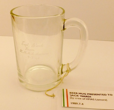 Description Beer mug presented to Captain Giovanni Antonio 'Jack' NARDI by crew of HMAS Lismore