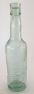 Description One of sixteen glass bottles of various sizes, colour and shape. Bottle small clear 'NEWMAN'S'