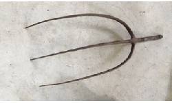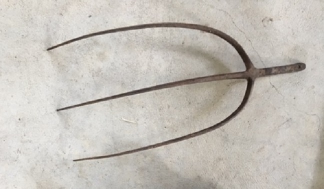 Description Pitchfork. Small no handle used for picking up grass-hay.