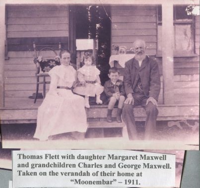 Description FLETT Thomas With Daughter Margaret MAXWELL And Grandchildren Charles And George Taken at Moonembah 1911
