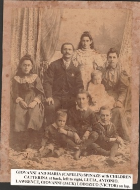 Description 1.Lorenzo SPINAZE(Father) 2. Maria GHABRIELA (Mother) nee ZANETTE 3. Lucia. 4. Regina, 5. Maria, 6.Antonio, 7. Joseph. 8.Peter. 9. Louisa. 10. Teresa children of the above.
