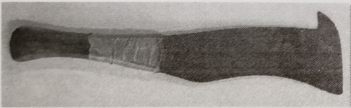Notes Cane knife used to cut banans bt=y the GAVA family. Handle mended with silver tape.